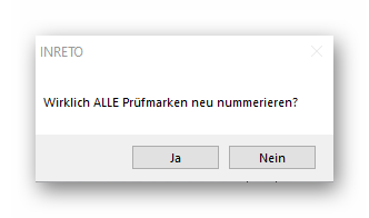 Nach dem auswählen des Buttons „Alle Prüfmarken neu Nummerieren“ erscheint ein Bestätigungsfenster. (Checkbox)