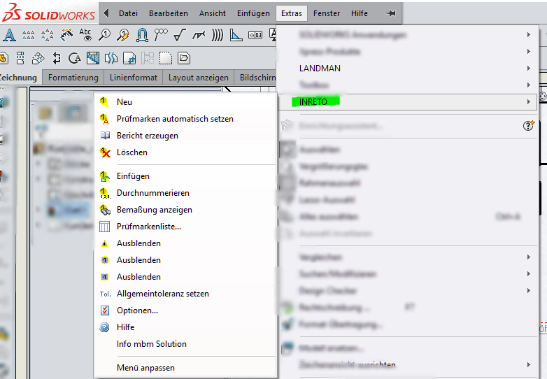 Alle Funktionen von INRETO können auch über das Pulldown-Menü „Extras/INRETO“ angesteuert werden.