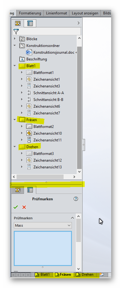 - "Ansichten" wie im Feature Manager dargestellt von oben nach unten.