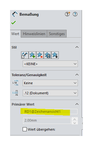 Option "Werkzeuggebunden" siehe "Bemassungen anzeigen"