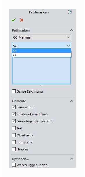 Für das Prüfsymbol "CC_Merkmal" steht nach der Auswahl ein weiteres PullDown zur Verfügung: