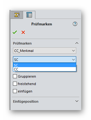 Für das Prüfsymbol "CC_Merkmal" steht nach der Auswahl ein weiteres Pulldown zur Verfügung: