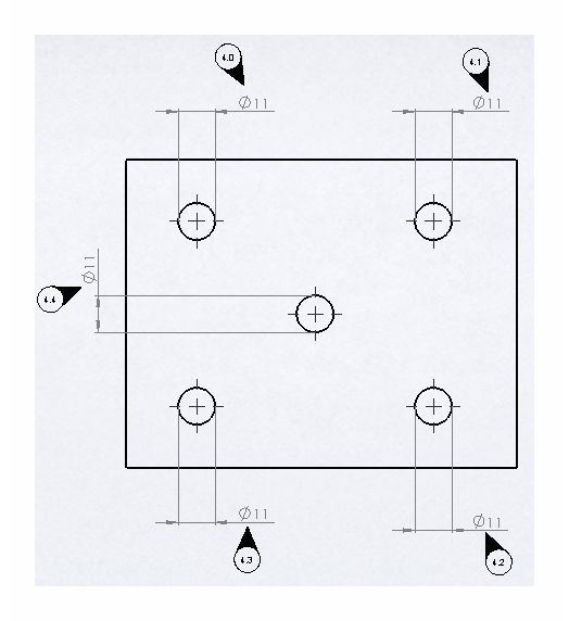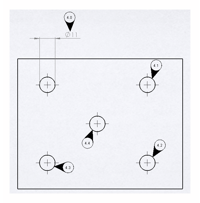 Sollten Sie in einem Artikel mehrere Feature mit nur einem Maß versehen (z.B. mehrere gleiche Bohrungen) so können sie durch das Auswählen von