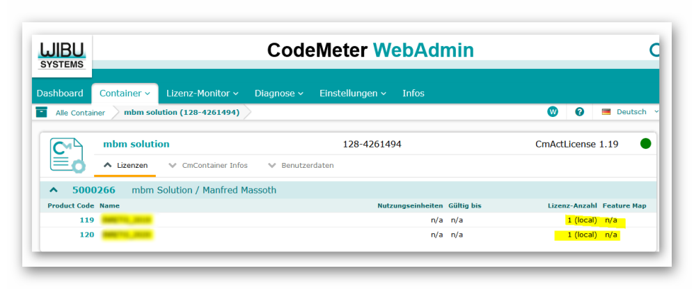 Bitte senden Sie die Lizenzanforderungsdatei (*.WibuCmRaC) an mbm solution.
