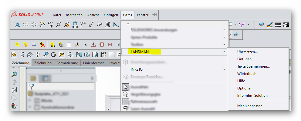 Alle Funktionen von LANDMAN können auch über das Pulldown-Menü „Extras/LANDMAN“ angesteuert werden.