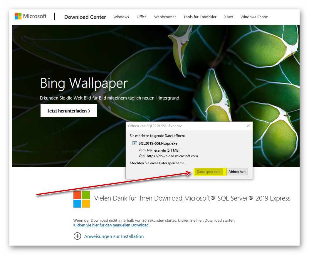 Installationsanleitung der "Microsoft® SQL Server® Express"
