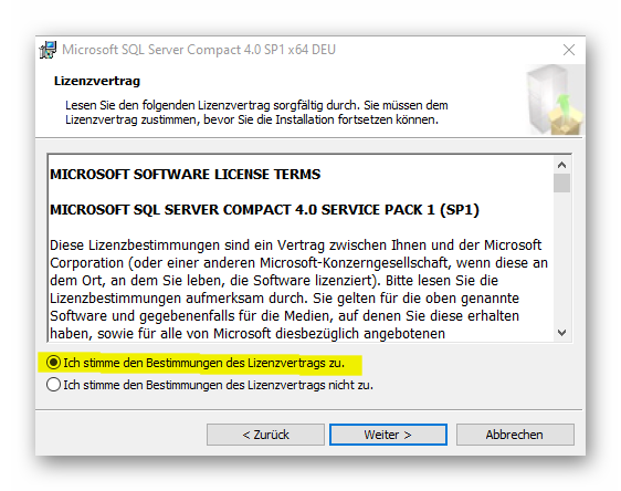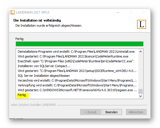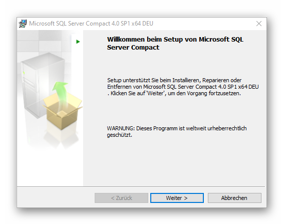 Während der Installation von LANDMAN wird "Microsoft SQL Server Compact - Datenbank" installiert.