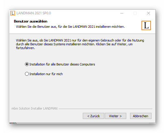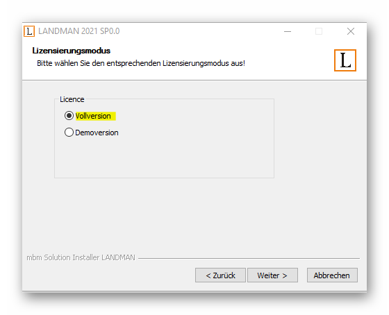 Auf jeden SOLIDWORKS - Client - PC auf dem Sie LANDMAN mit einer Einzelplatzlizenz, bzw. in Verbindung mit einem Floatingserver als Floatinglizenz benutzen möchten,muss LANDMAN als Vollversion installiert werden