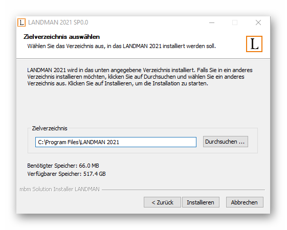 Zusätzlich wird während der Installation in der Datenbank eine LANDMAN - Tabelle erstellt.
