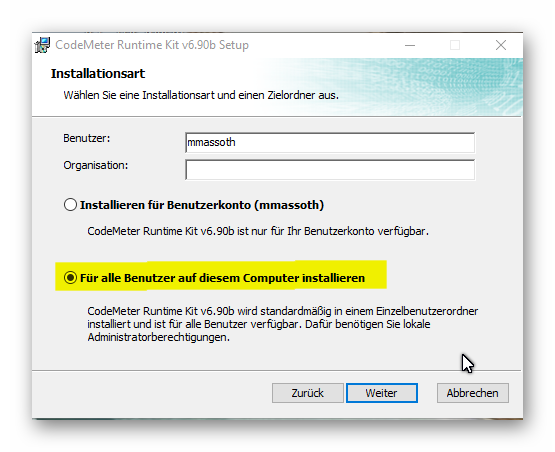 Während der Installation von LANDMAN wir der kostenlose „CodeMeterRuntime Kit“ installiert.